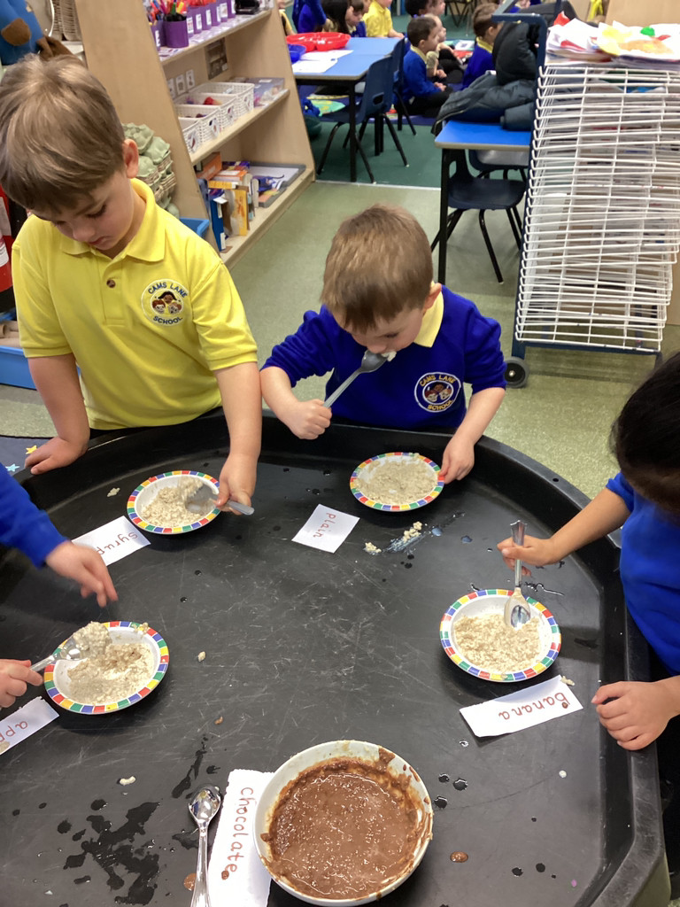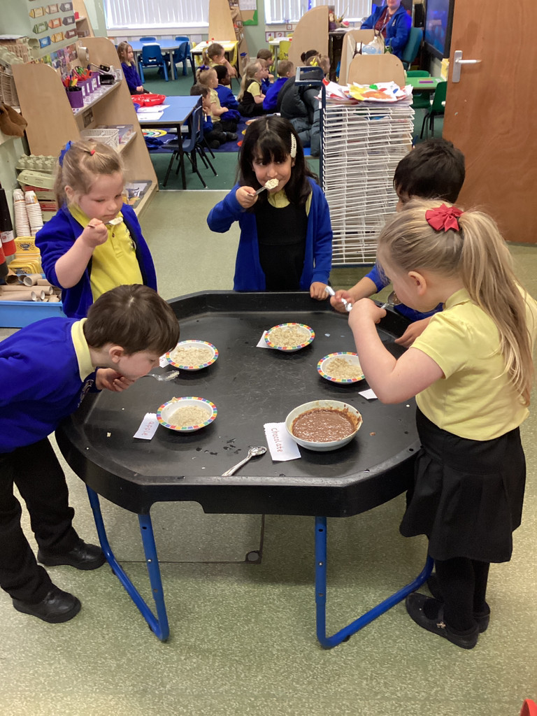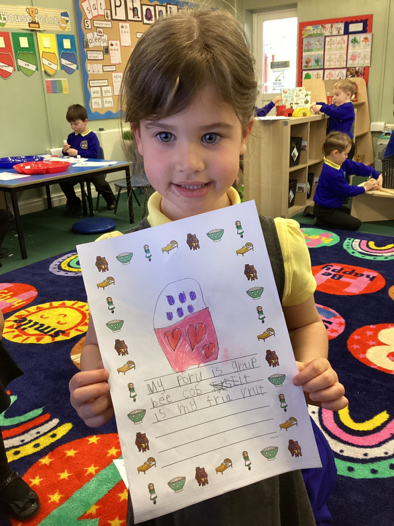 Alongside our World Book Day activities, for Spring 2 we have a Traditional Tales focus, so each week the children explore a different tale. We have so far explored The Three Little Pigs and Goldilocks and the Three Bears. We explore these texts through reading them, acting them out, reading alternate versions and discussing the similarities and differences. For Goldilocks, we even had our own porridge tasting test and most of the children wanted to eat all the chocolate porridge, just like Goldilocks did with Baby Bear's porridge. After our taste test, the children drew their porridge and wrote about its flavour, colour, what it had in it or why they liked it.
