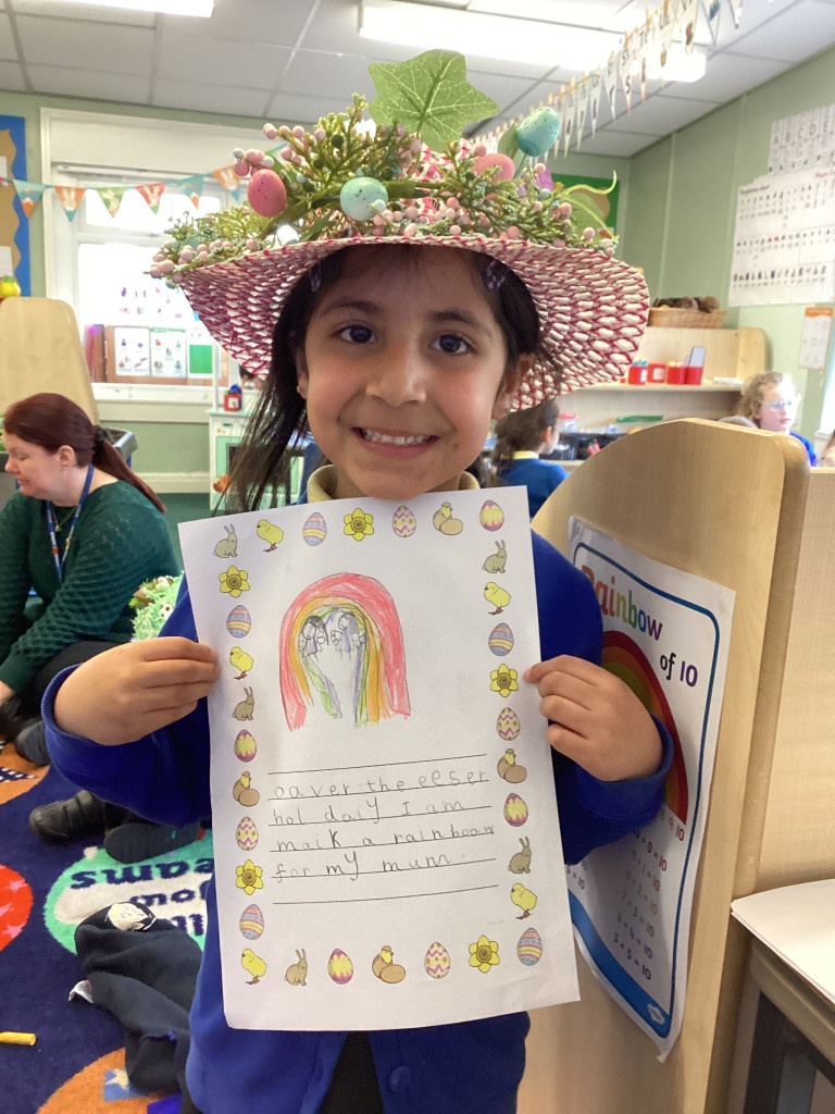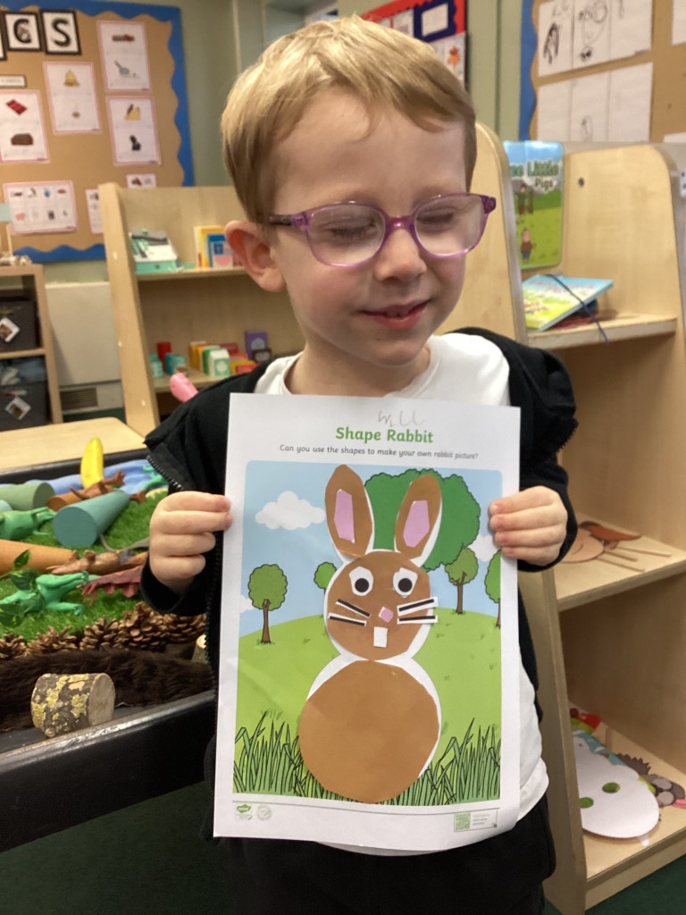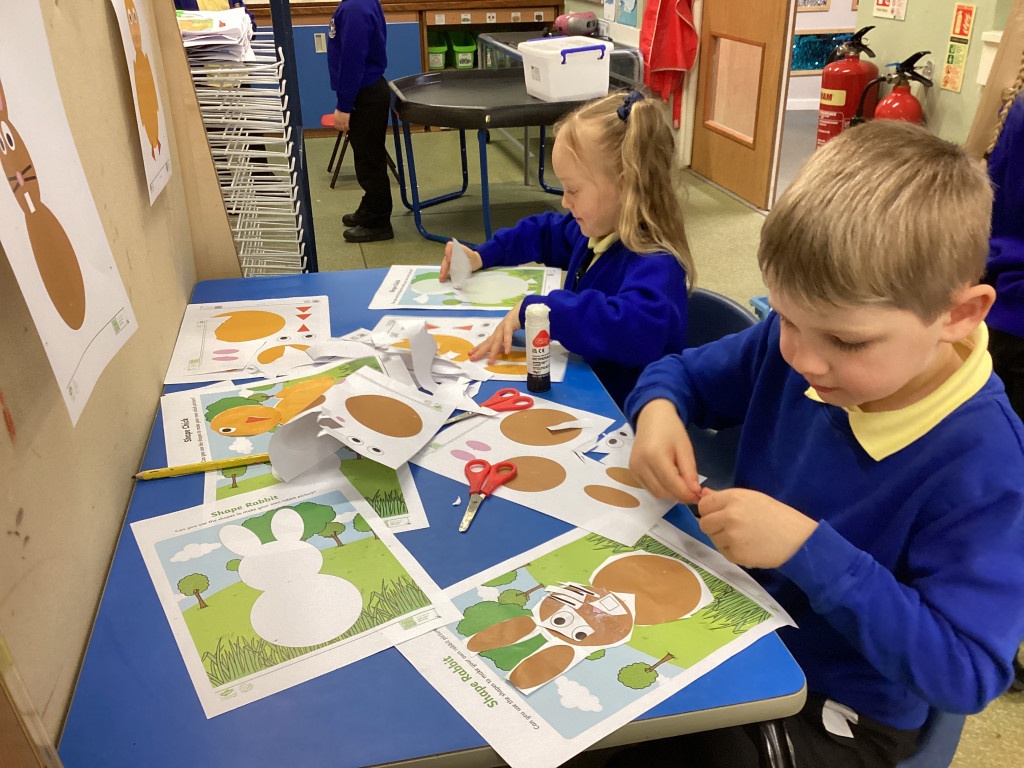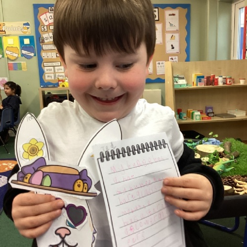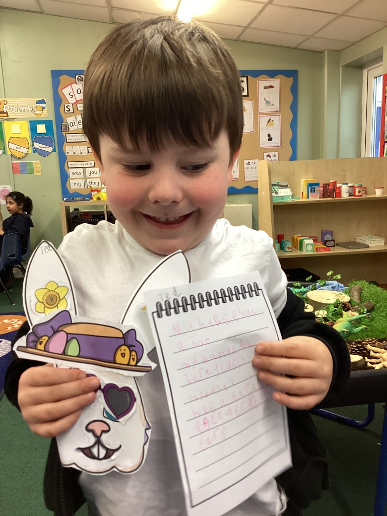 We had our provision set up with Easter-themed activities, with lots of children enjoying designing their own Easter bunny and some children even going on to then write and describe theirs. We had lots of careful cutting and sticking with our chick and bunny challenge. We had Easter egg counting, a tricky word Easter egg hunt, and we had many children writing about what they plan to do over the Easter.
