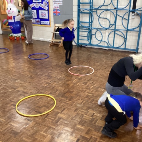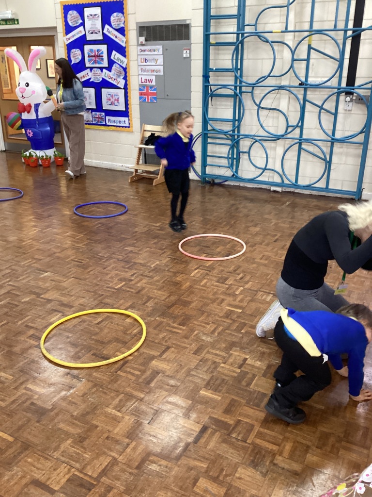 We had our sponsored bunny hop to help the Easter bunny save Easter, arranged by the Friends of Cams Lane (FCL). The children had to navigate the obstacle course and help collect the eggs, so he would be able to deliver them to the children on time.