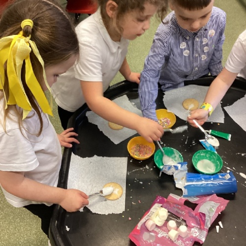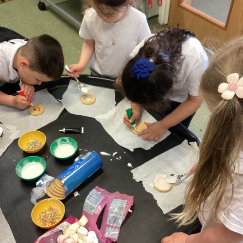 We had our golden treat afternoon, where we had the afternoon off timetable. The children chose outdoor provision and we decorated biscuits as an extra tasty treat.