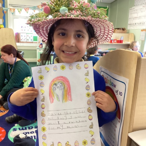 We had an Easter egg hunt outside, where children had to hunt for an egg, all before winning a prize. This was arranged by our School Council.