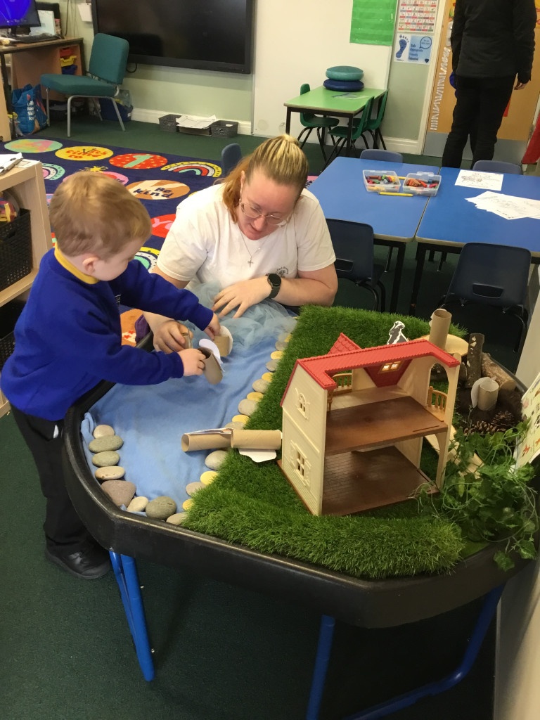 A big part of Reception is our termly stay and play sessions. These are an hour long. It is a great opportunity for you as parents/carers to spend some time in the classroom environment with your child. You can complete activities with them and explore all the areas that the children spend their continuous provision time in. We open outside as much as the weather permits it. They can be themed. For the Autumn 2 session, we had Christmas activities out for the children and parents to access.