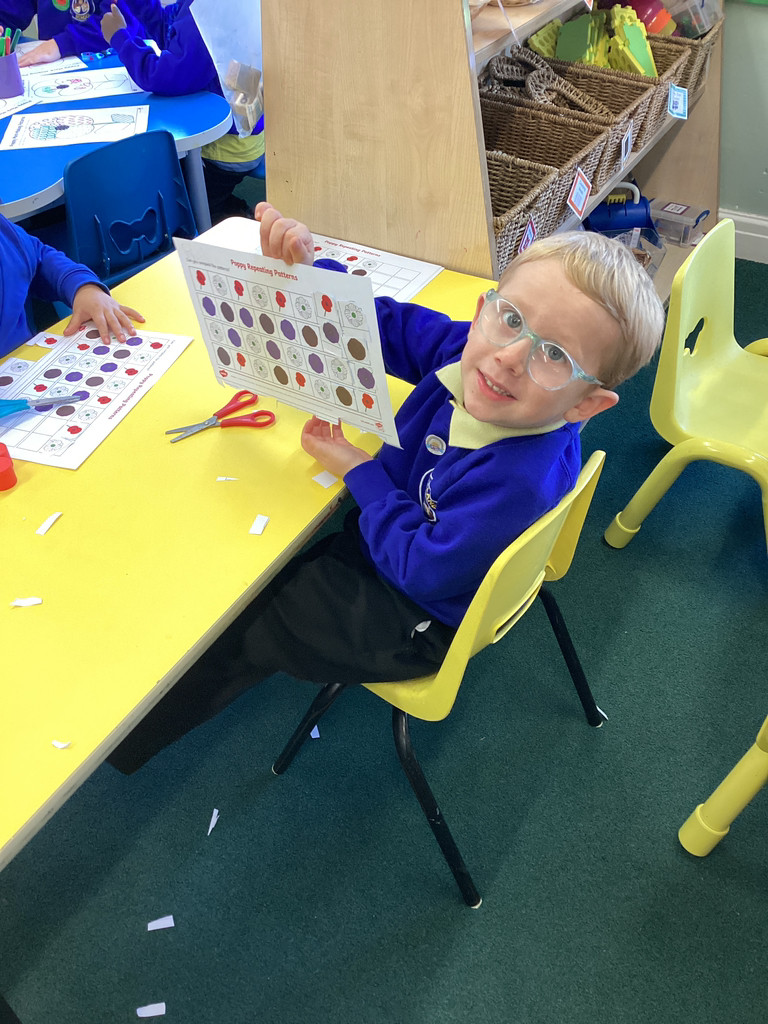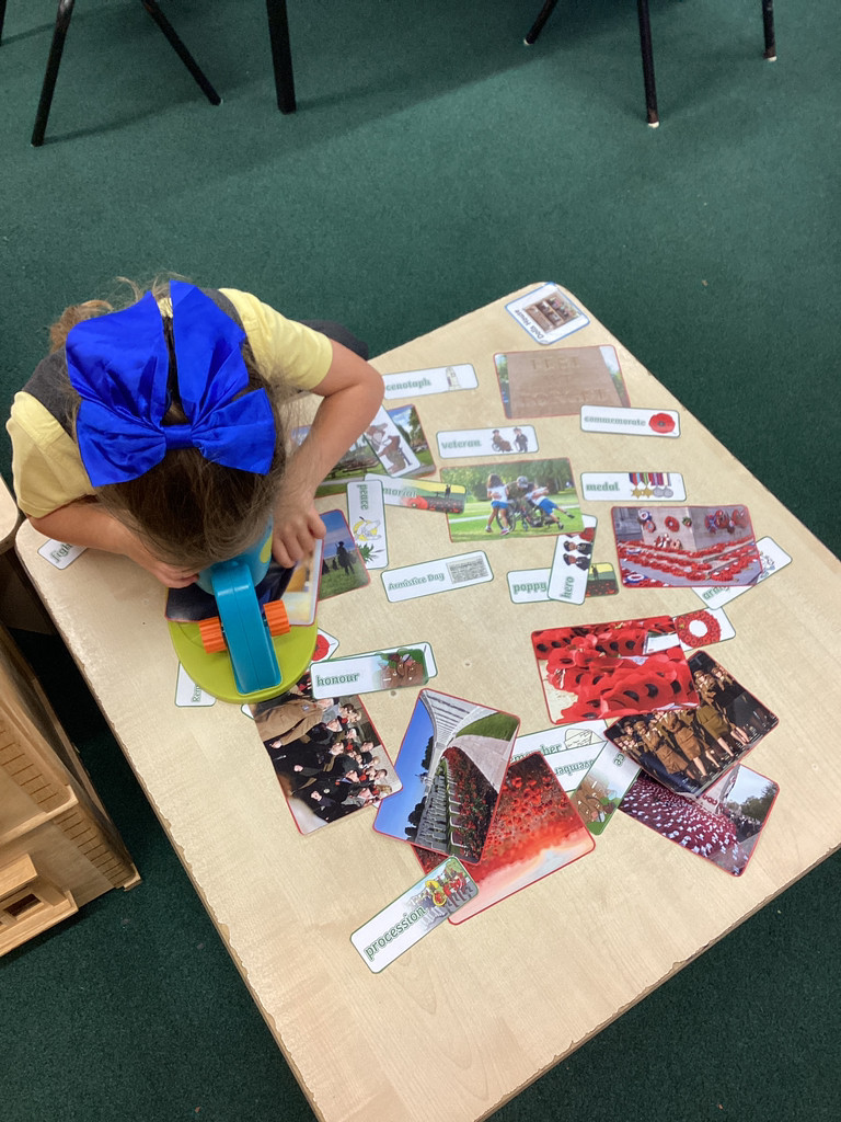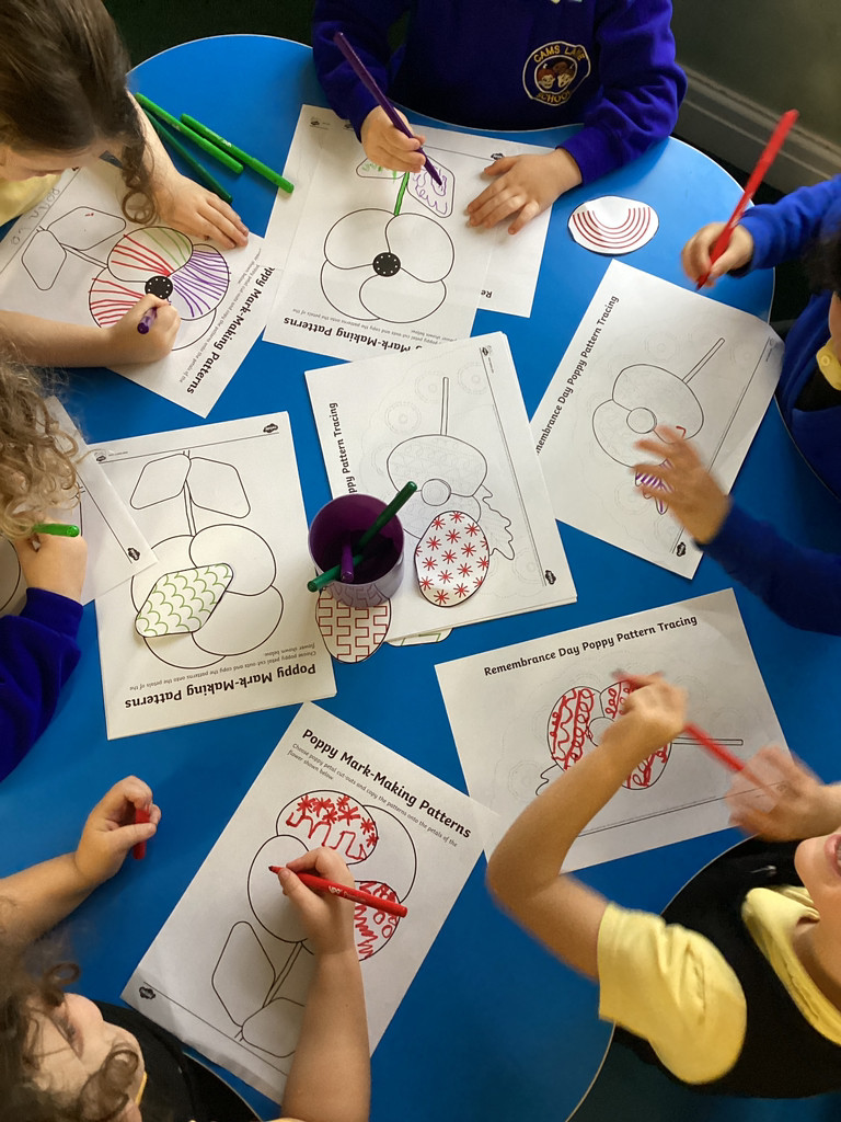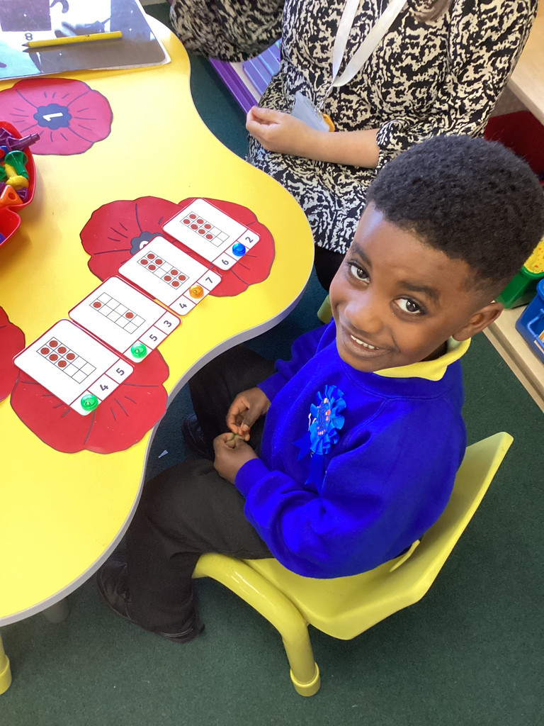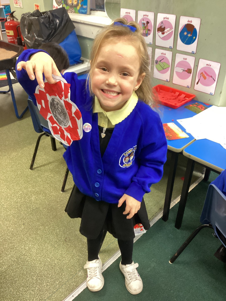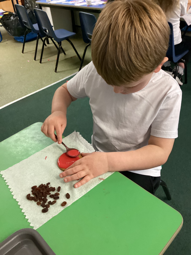 We learn about the importance of Remembrance Day and celebrate through focused activities within provision. The children could decorate poppies through mark making, finger painting or tissue paper collage art. They could colour in poppies, count poppies on ten frames, continue simple poppy patterns and build poppies out of cubes. The children understand that purple poppies are also worn to remember the animals, so we represented both colours through our creations. We finished our celebrations with biscuit decorating.