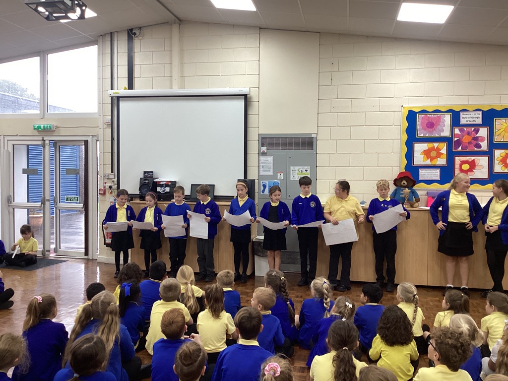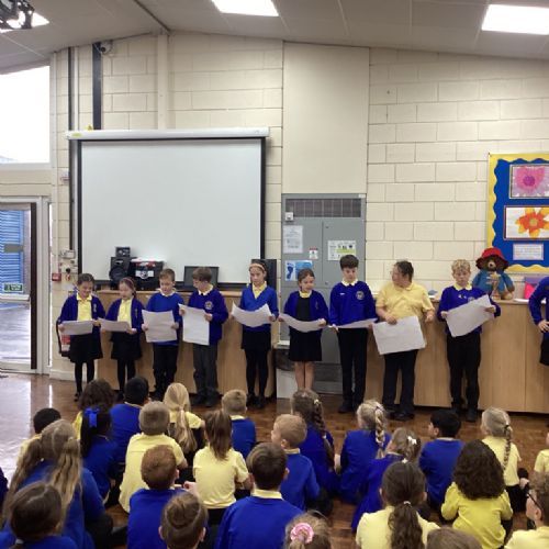 We welcomed back Sean Perkins, an author/illustrator and poet who worked with all of our children. Each class took part in a unique workshop, which they thoroughly enjoyed. Reception and Year 1 loved the Silly Pie song, where they created a string of rhyming words to use as part of the song. In our Golden assembly, each class showcased a sample from their workshop. Well done to the children who came to the front to share.