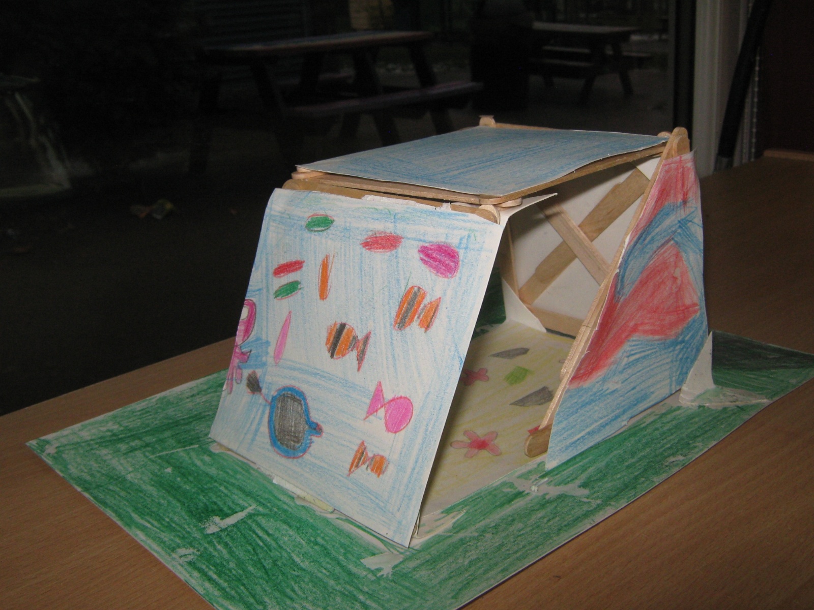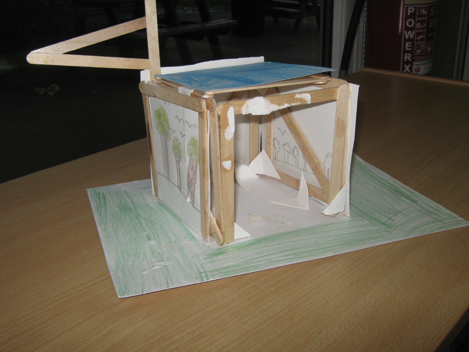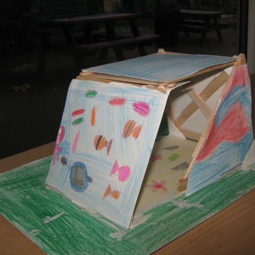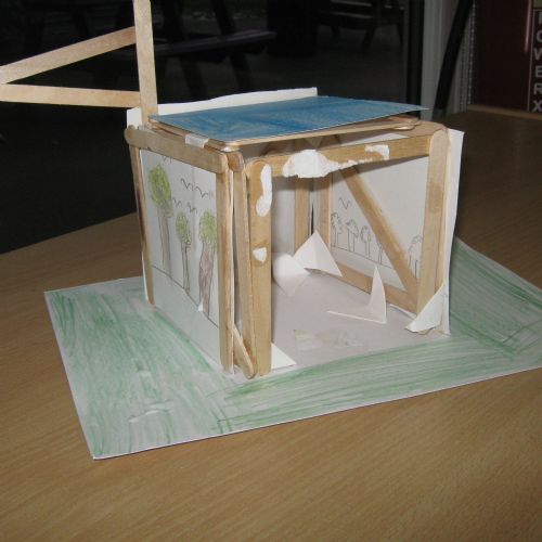 Year 4 have been creating pavilions using lolly pop sticks. They have designed their structure and used triangles to add strength and to make their structure stable. They then added cladding to cover their structure, using an animal and habitat theme.