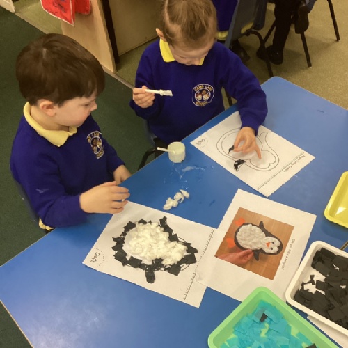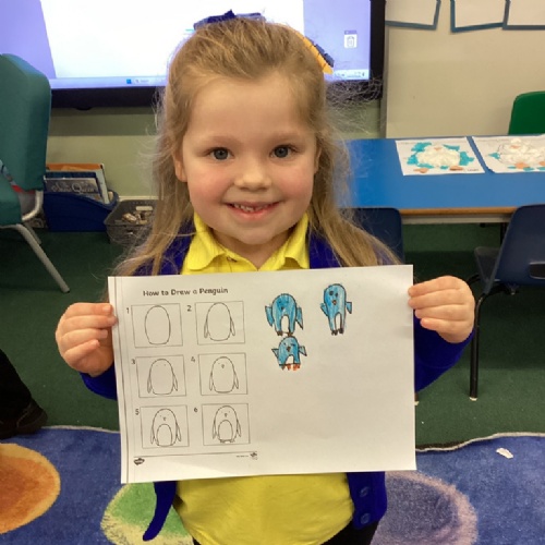 In Reception, we often link our provision activities to the texts we are reading that week or across the term. A focus this term has been on the Polar regions. The children particularly enjoyed sharing the story 'The Blue Penguin' by Petr Horácek. We had lots of fantastic penguins painted, created or drawn by the children inspired by the main character in the story. The children learnt that penguins live in the South Pole and couldn't believe just how cold Antarctica gets. We read 'Curious Questions & Answers About Polar Lands' by Miles Kelly as our non-fiction text and the children were fascinated by what they learnt.