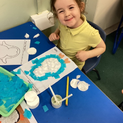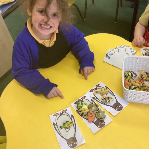 We used the theme of penguins to help with one of our maths focusses this term – representing numbers to 10, where the children had to feed the penguin a set number of fish. We also learnt about all the Arctic animals, and we even planned a trip to the North Pole, thinking all about what we would need and what we would hope to see. Again, we linked our learning about the Arctic to our maths, where we've been looking at arrangements of size (smallest to biggest), length (smallest to longest) and height (shortest to tallest).